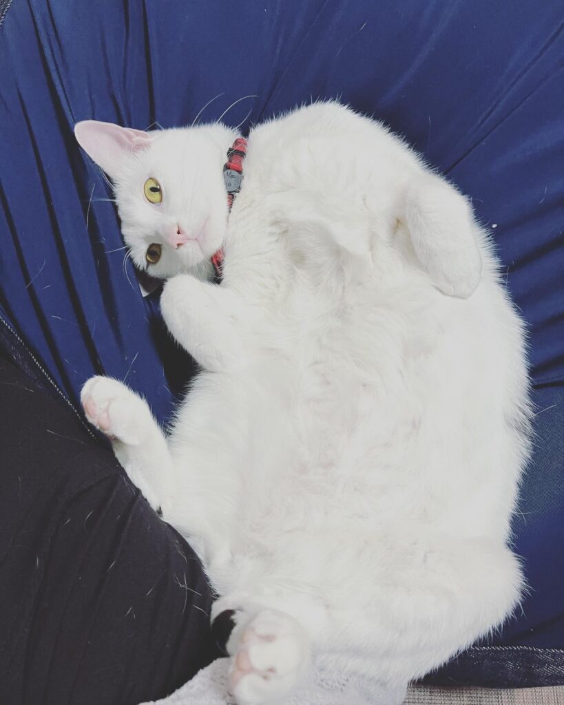 他の猫にもスリスリしたり、寝転がってる人間には腕の中に勝手にくるんと入ってくる。