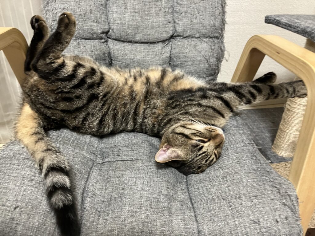 ちょっとどんくさい子なので家猫でおもちゃとバトルがちょうどいいのかも知れません。
