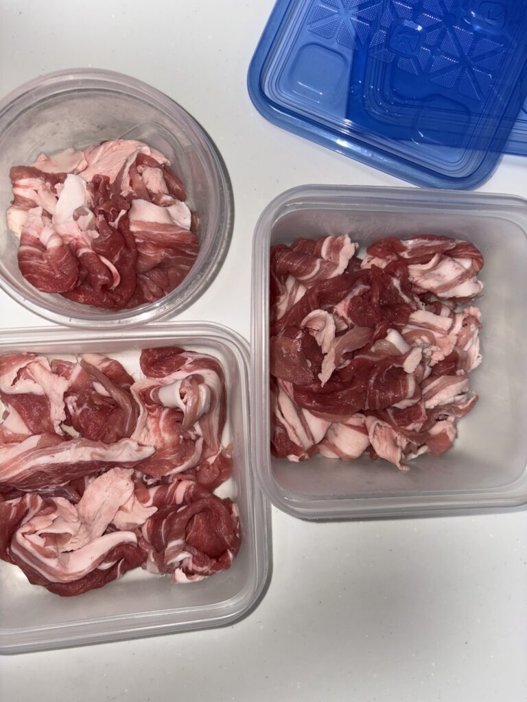 味噌漬け用、生姜焼き用ってアイラップで保存しています。