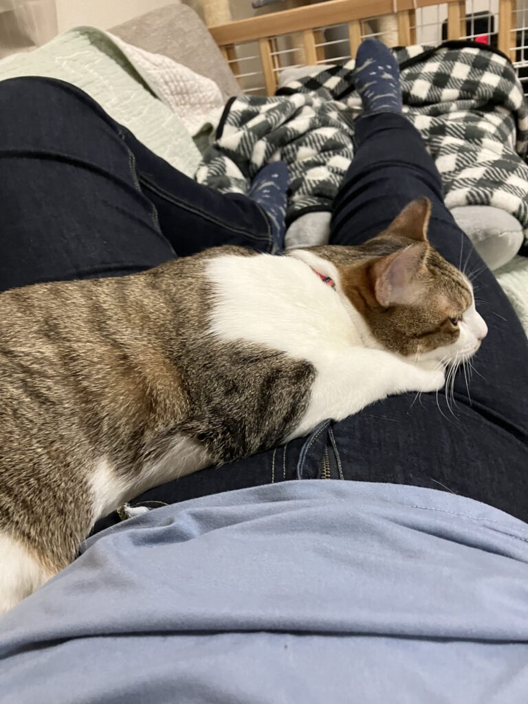 リビングで寝転がっていると、たまに猫に踏まれる。