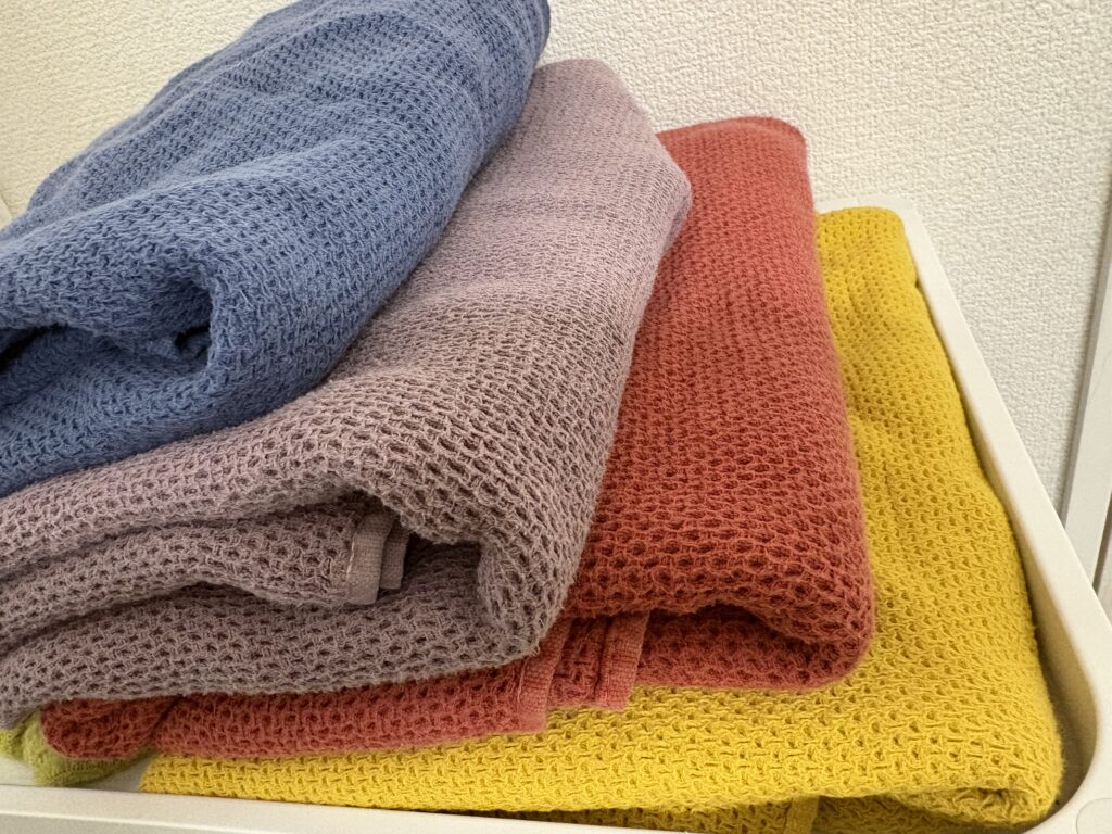綿100%で水吸いOKの、お気に入りタオルたち。