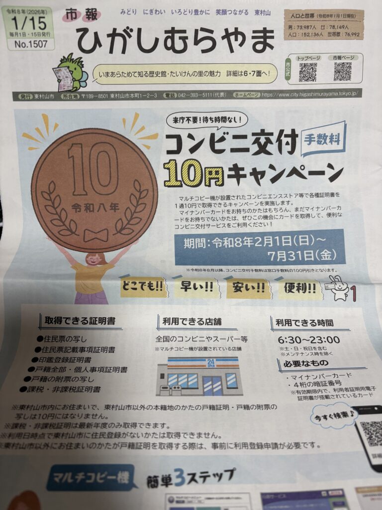 最近ほんとに新しいことがどんどん始まってる東村山。