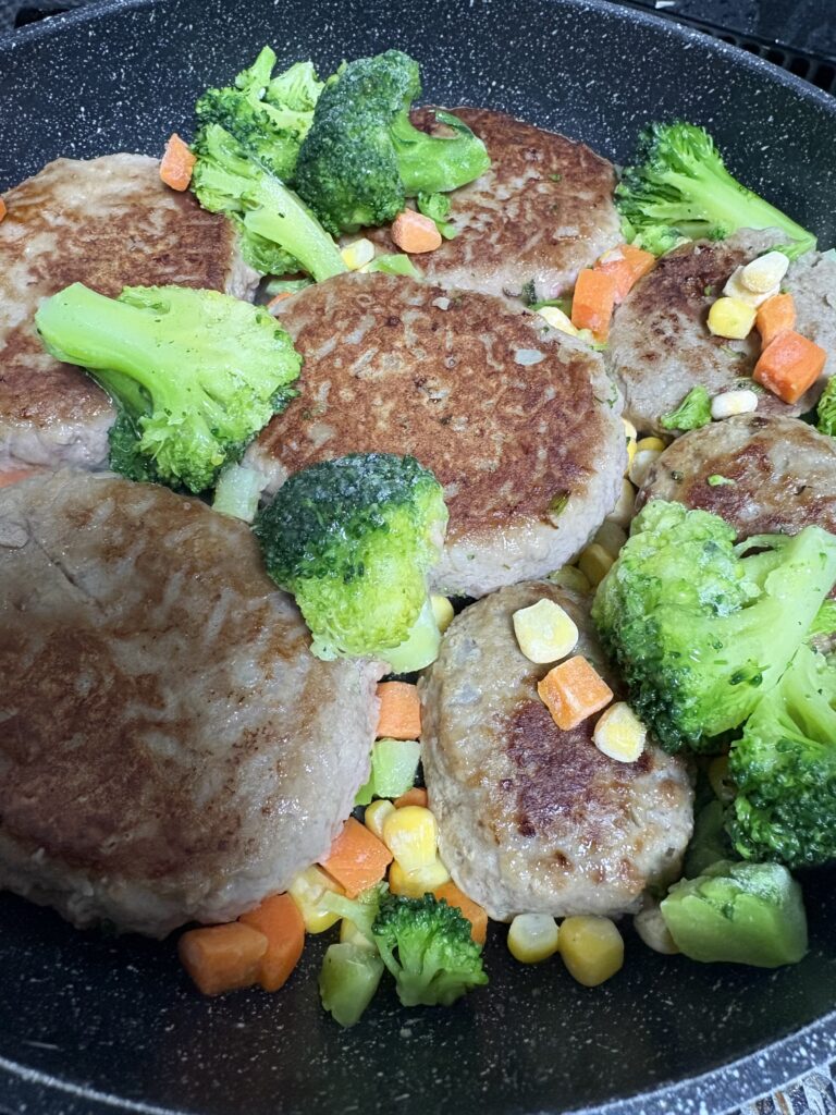 冷凍ハンバーグもあったけど、20分くらいで完成。